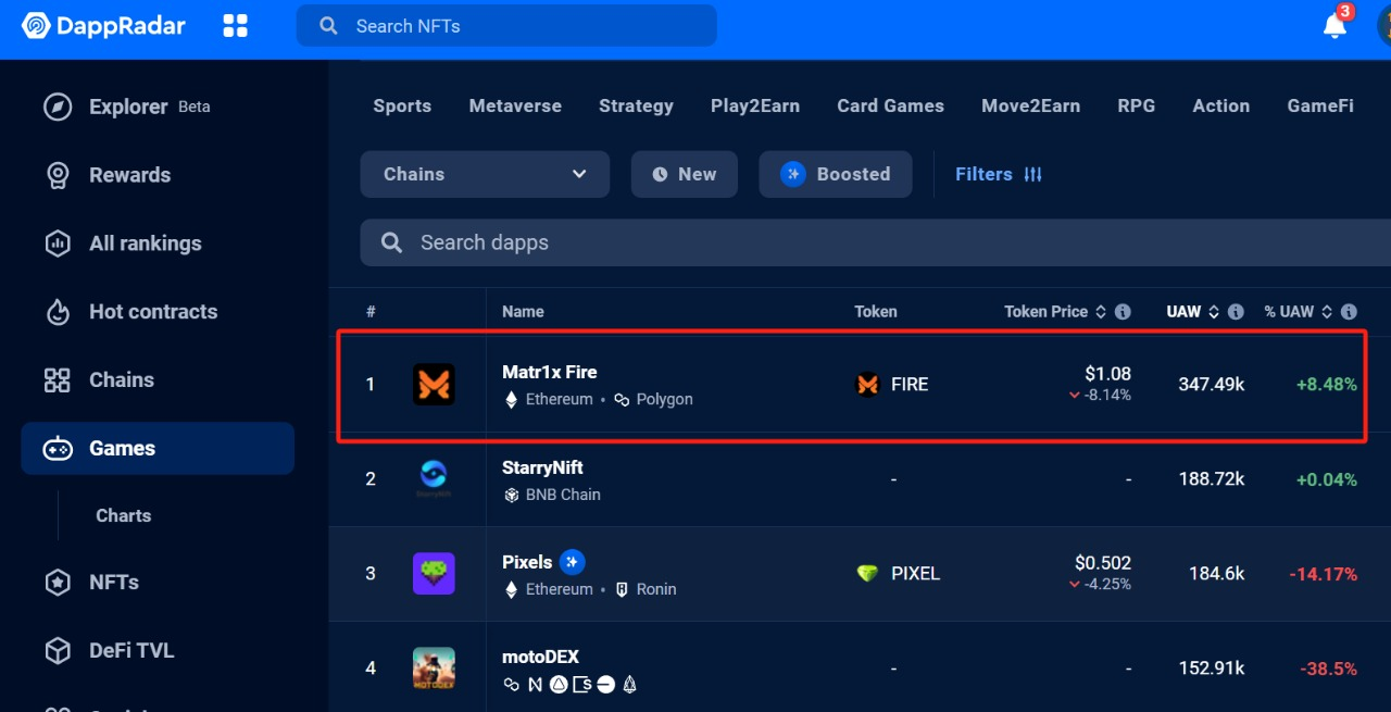 MATR1X FIRE全球下载超110万次,Web3游戏独立活跃钱包地址排名第一