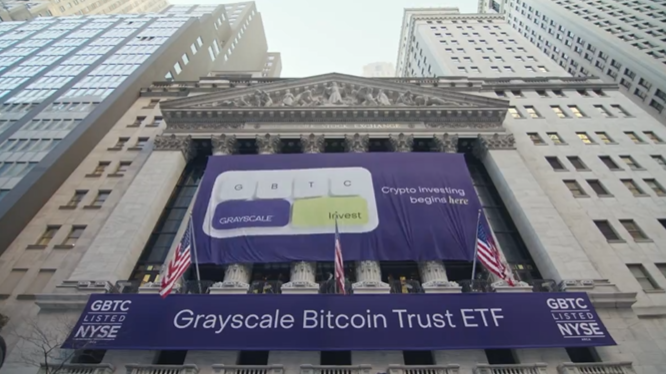 灰度现货比特币 ETF 横幅出现在纽约华尔街