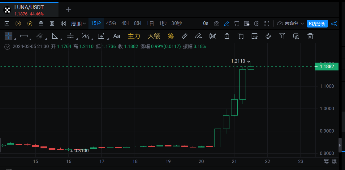 深潮 TechFlow 消息,据OKX行情显示,或受Do Kwon引渡案件胜诉消息影响 ,LUNA一小时内涨幅44%,现报1.18美元。