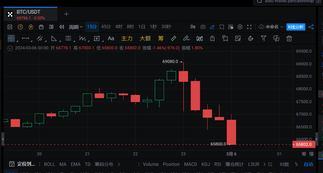 BTC跌破66000美元,24小时涨幅收窄至0.4%