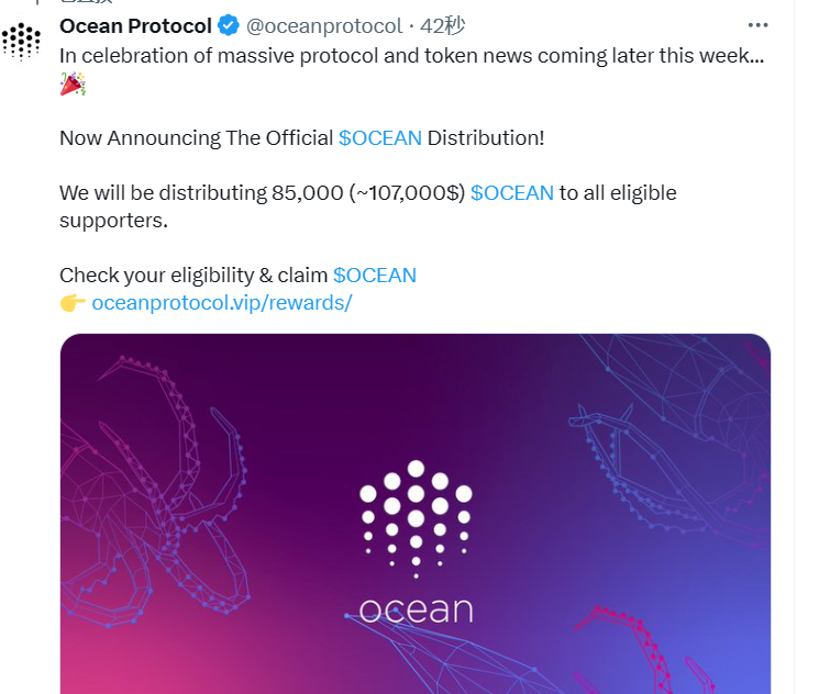 AI项目Ocean Protocol官方X账户或遭黑客攻击,并发布钓鱼链接