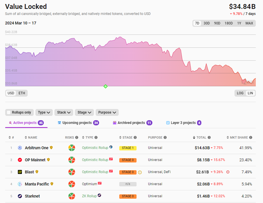 以太坊 Layer2 网络总锁仓量 348.4 亿美元,7日跌幅9.78%