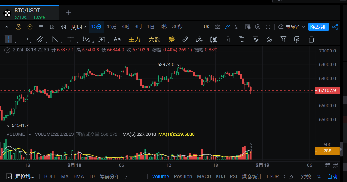 比特币短时跌破67,000美元,日内跌幅达1.89%