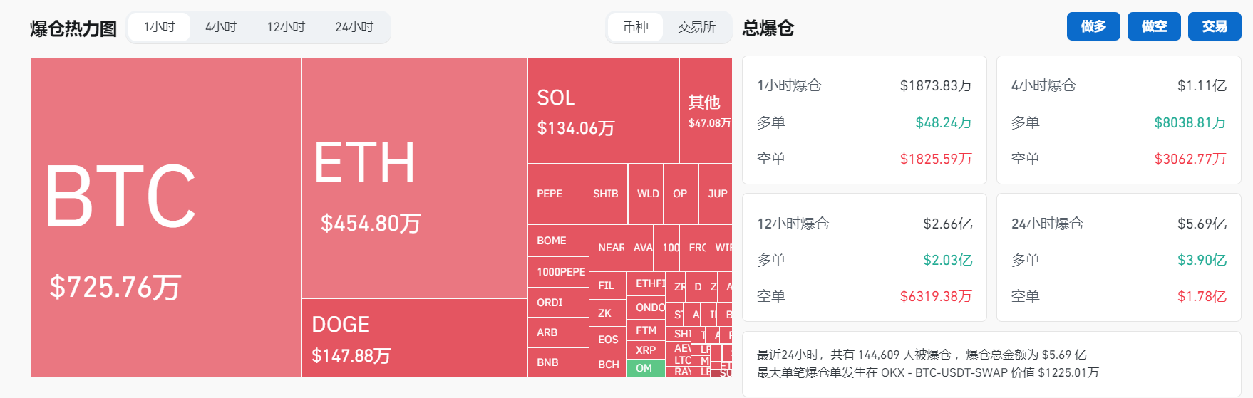 过去1小时全网爆仓1873.83万美元,空单爆仓1825.59万美元