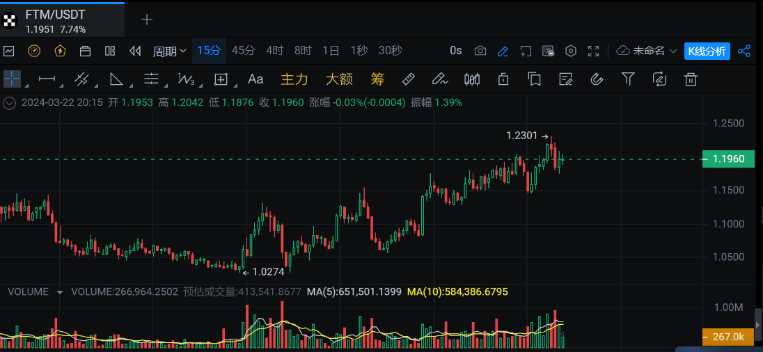 FTM短时突破1.2美元,创2022年5月来新高