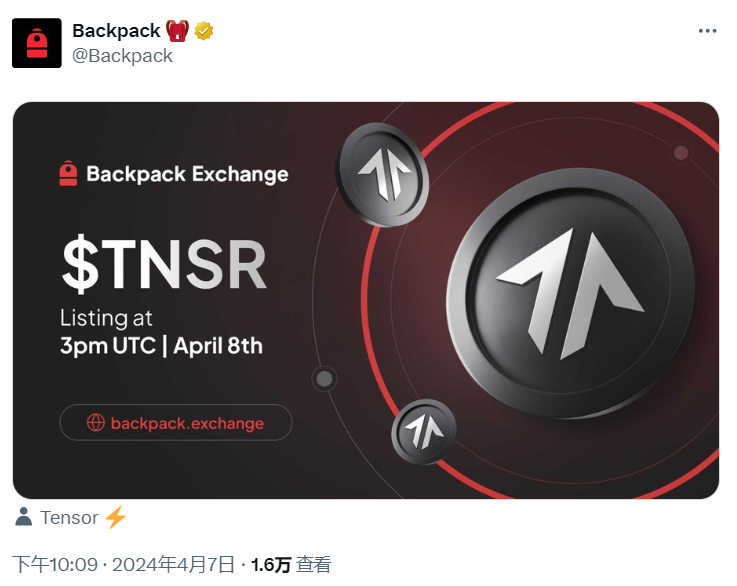 深潮 TechFlow 消息,Backpack宣布将于北京时间4月8日23点上线TNSR现货交易。