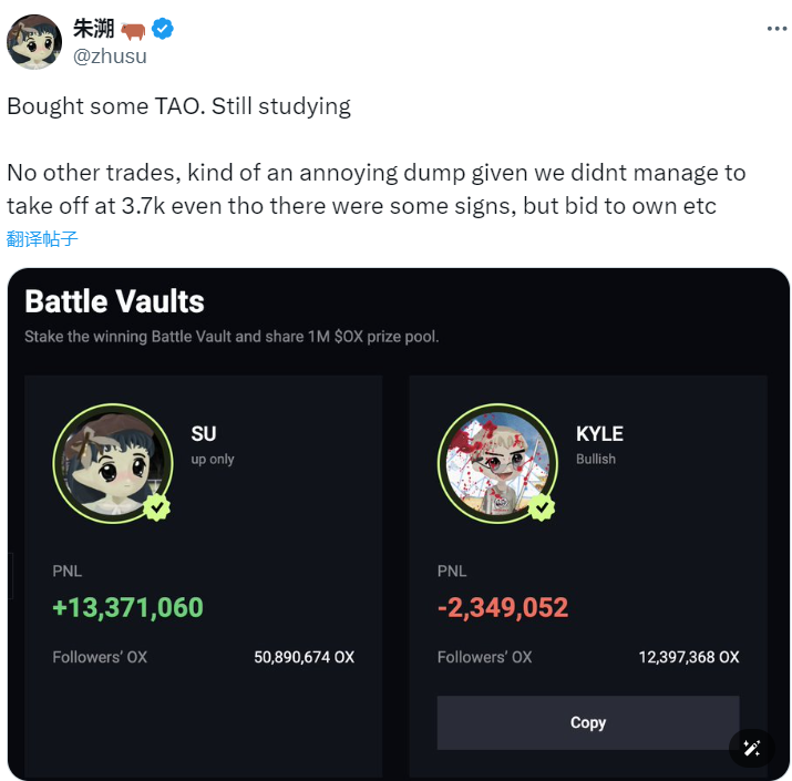 Zhu Su称已购入TAO代币,TAO 24小时涨幅达10.59%