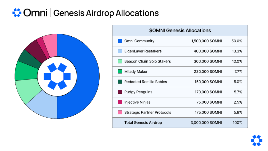 Omni Network公布创世空投详情,300万枚OMNI将空投至EigenLayer再质押用户等