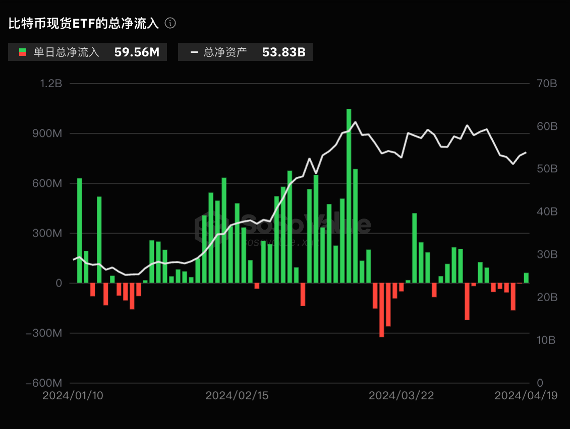 比特币现货 ETF 昨日总净流入 5955.80 万美元,过去 5 日净流出后首次净流入