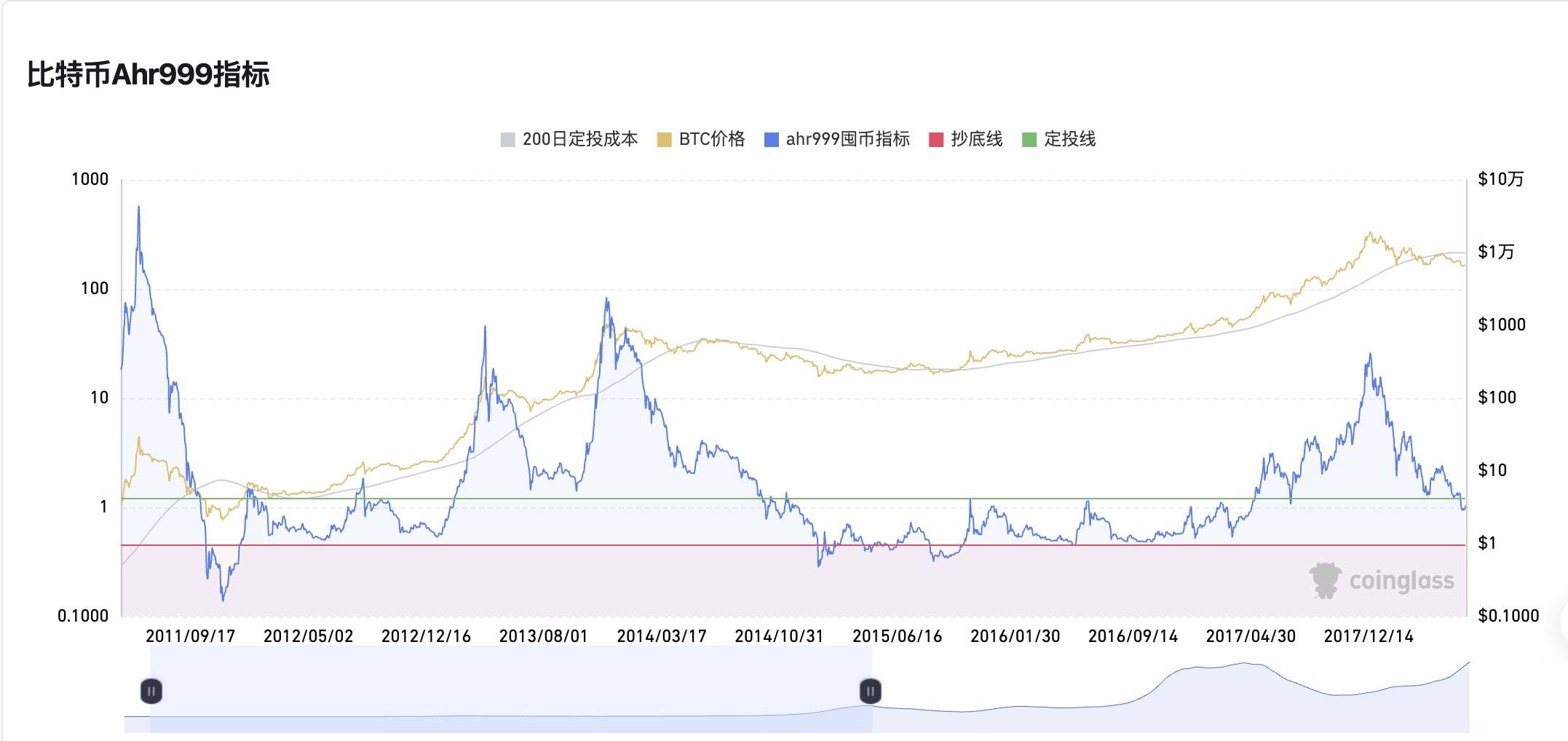 比特币AHR999指标显示比特币已进入囤币定投区间