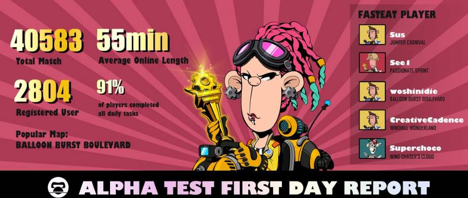 Web3赛车派对游戏Kartparty Alpha Test首日,共超过2800名玩家参与,进行了超4万场比赛
