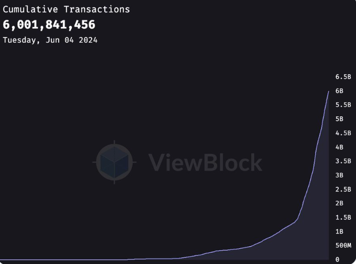 深潮 TechFlow 消息,据 Forward Research数据,Arweave 网络累计交易笔数已超 60 亿笔,这比一年前同期增长了 7 倍。