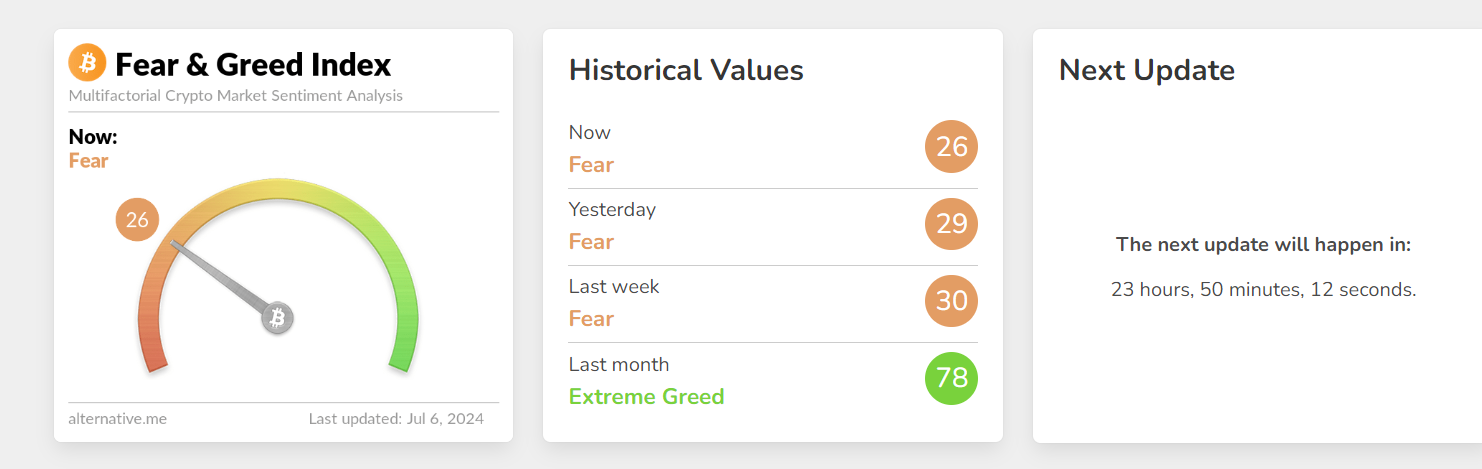深潮 TechFlow 消息,根据alternative最新数据显示,今日恐惧与贪婪指数(FGI)出现小幅下跌,从昨日的29点跌至26点,续创近1年新低。