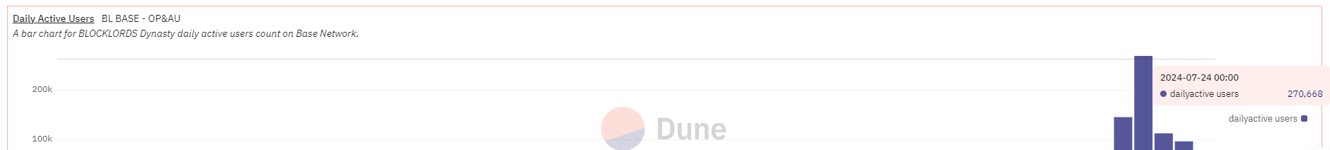 链游BLOCKLORDS于7月24日的日活用户突破27万,成为Base链上主要游戏之一