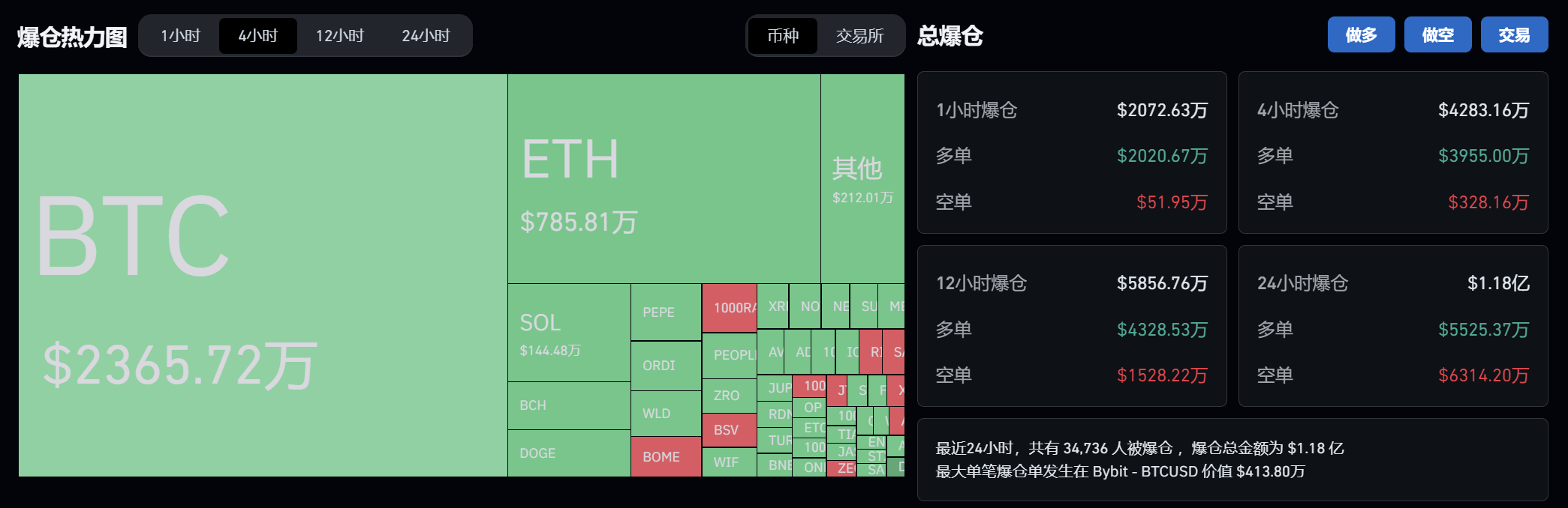 过去4小时全网爆仓金额超 4000 万美元,主爆多单