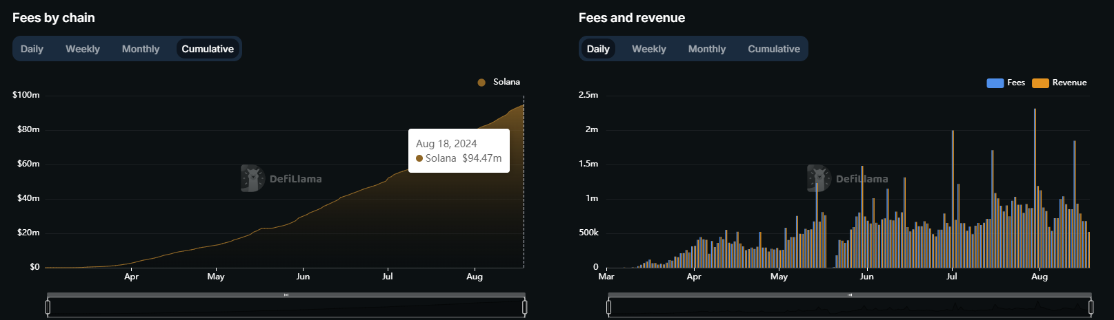 深潮 TechFlow 消息,根据DeFiLlama数据,Solana生态Meme币生成平台Pump.Fun该平台目前累计收入为9450万美元,相比6月底的5000万美元大幅增长。