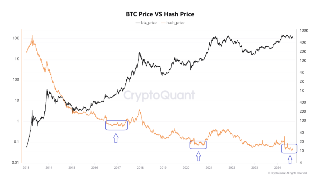 CryptoQuant分析师:比特币算力价格低迷或暗示BTC价格接近底部