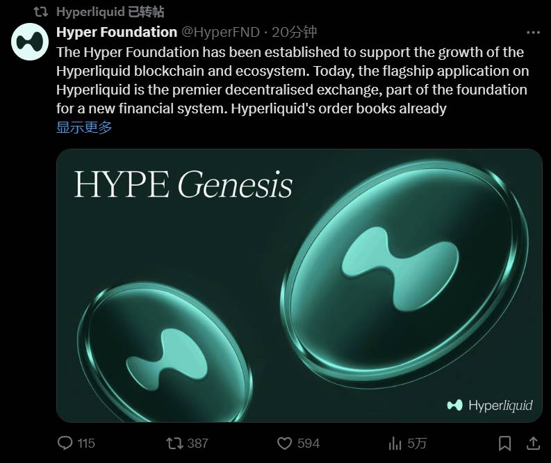 Hyperliquid 宣布成立基金会,即将推出原生代币 HYPE