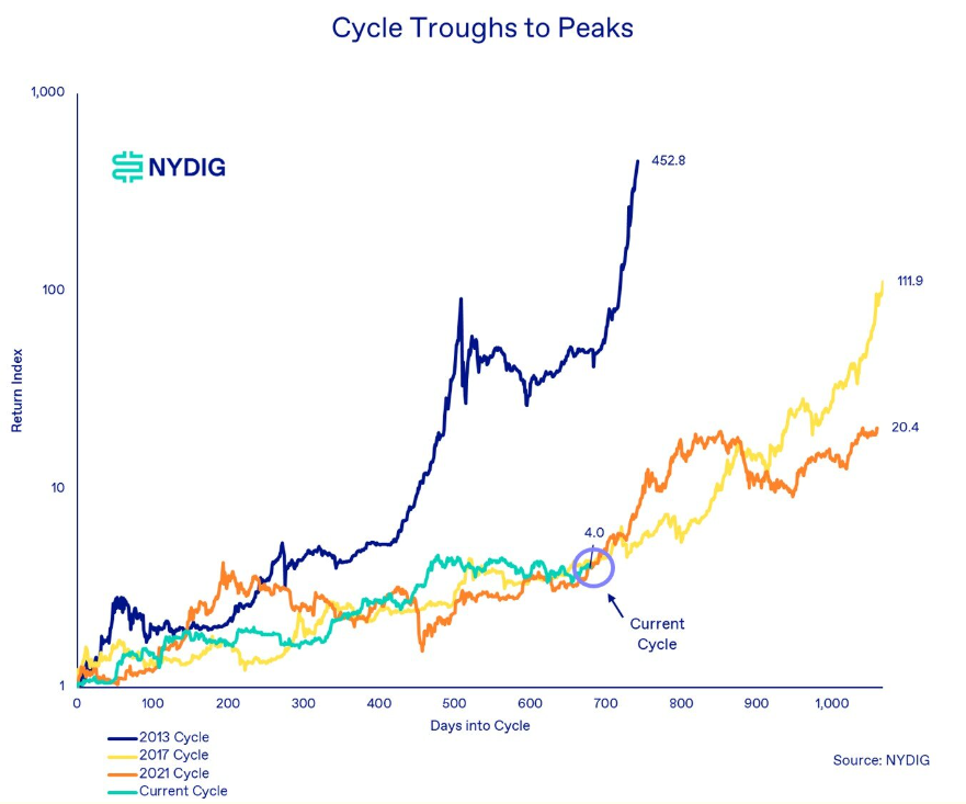 NYDIG:比特币的表现与前两个周期水平完全一样,Q4 或是表现最好的季度