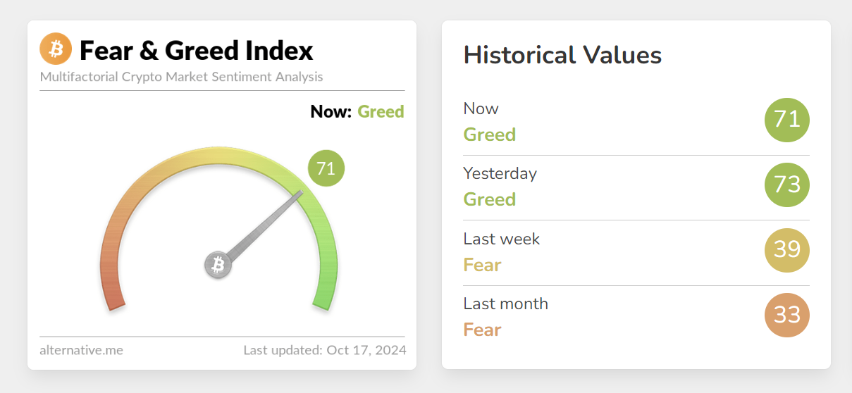 加密货币恐慌与贪婪指数报 71,市场情绪持续表现为“贪婪”