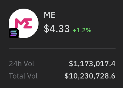 深潮 TechFlow 消息,12 月 8 日,据 Degen News 披露,Magic Eden 代币 $ME 在 Whales Market 盘前市场累计交易量突破 1000 万美元,暂报 4.33 美元,24 小时涨幅 1.2%,24 小时交易量达 117.3 万美元。