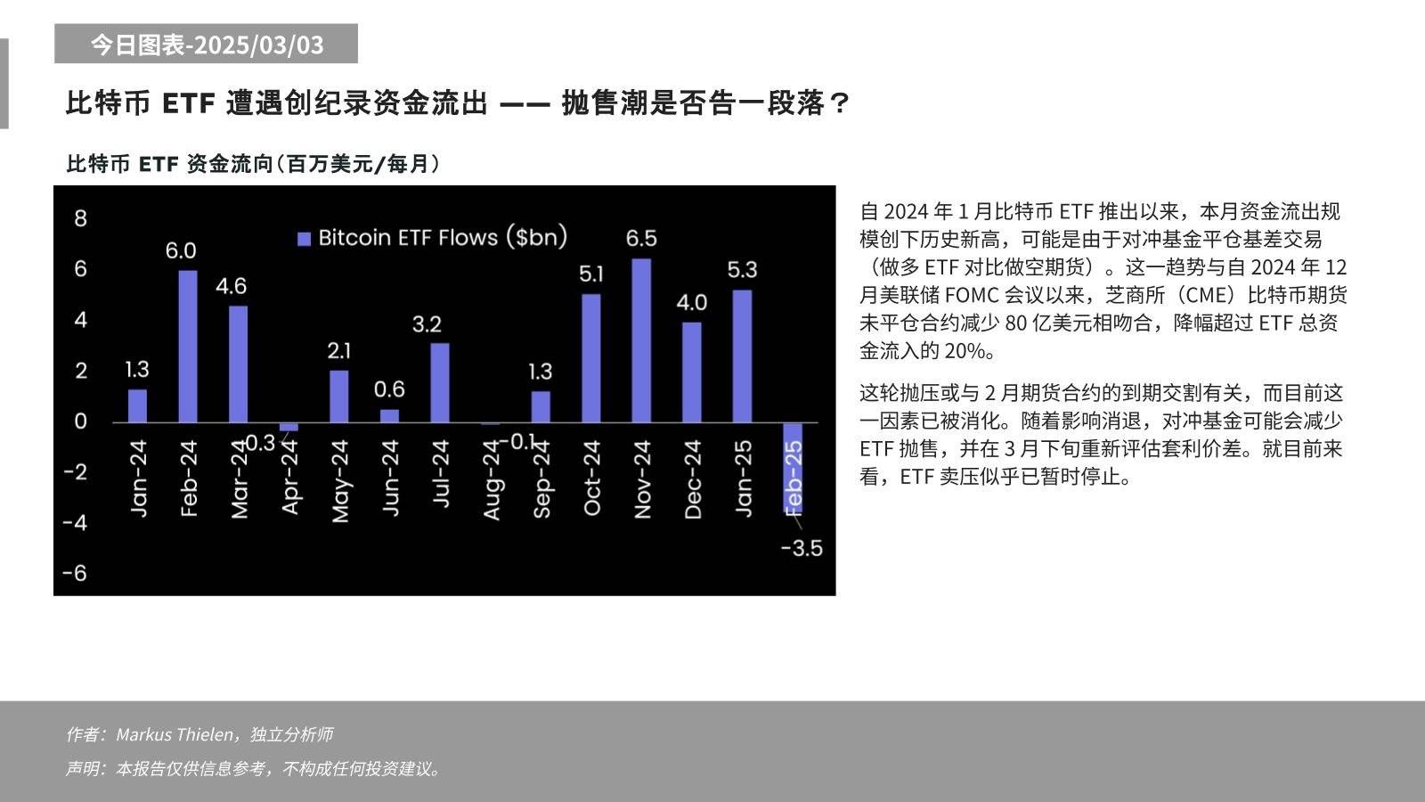 Matrixport:对冲基金或将减少 ETF 抛售并在 3 月下旬重新评估套利价差