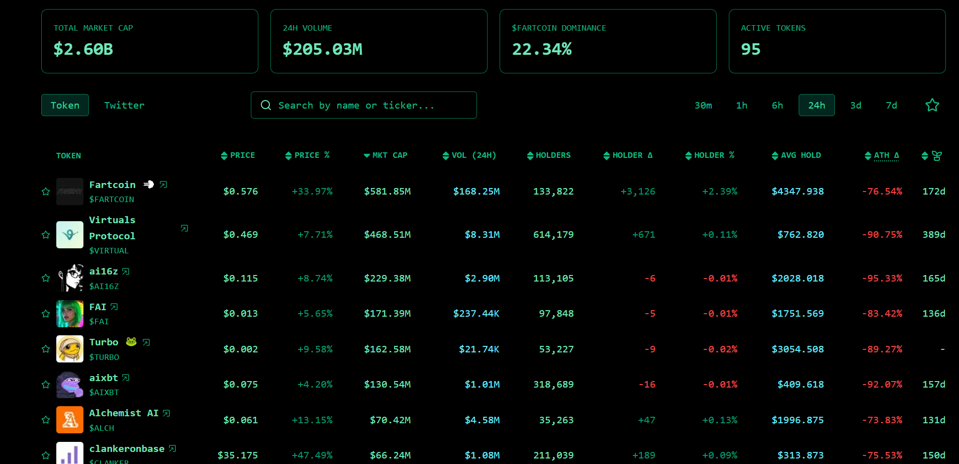 AI Agent 概念代币回暖,Fartcoin 24 小时涨幅达 33.97%