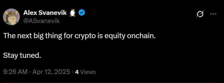 深潮 TechFlow 消息,4 月 12 日,据 Nansen CEO Alex Svanevik 在 X 平台发言表示,链上股权(equity onchain)将成为加密货币领域的下一个重大发展方向。