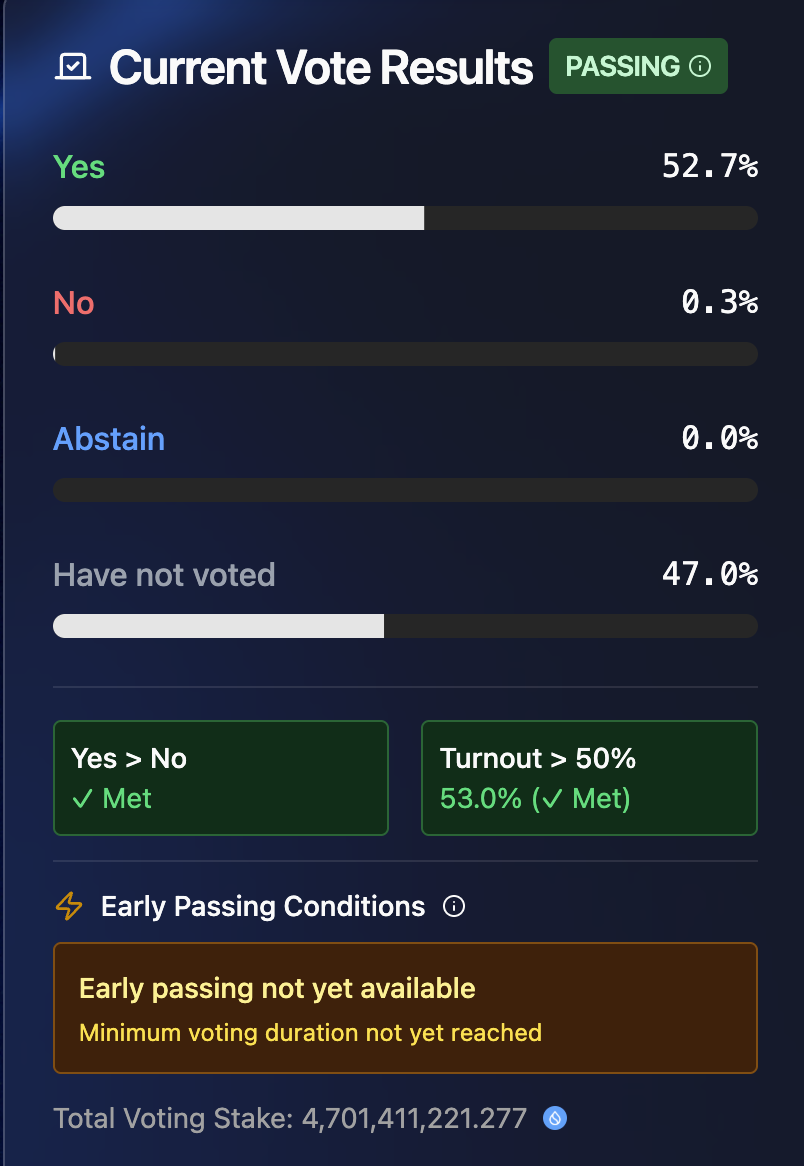 深潮 TechFlow 消息,5 月 28 日,Sui 社区关于"是否通过特殊交易将 Cetus 协议被盗资产返还"的提案已获得通过,赞成率达到约 53%。
