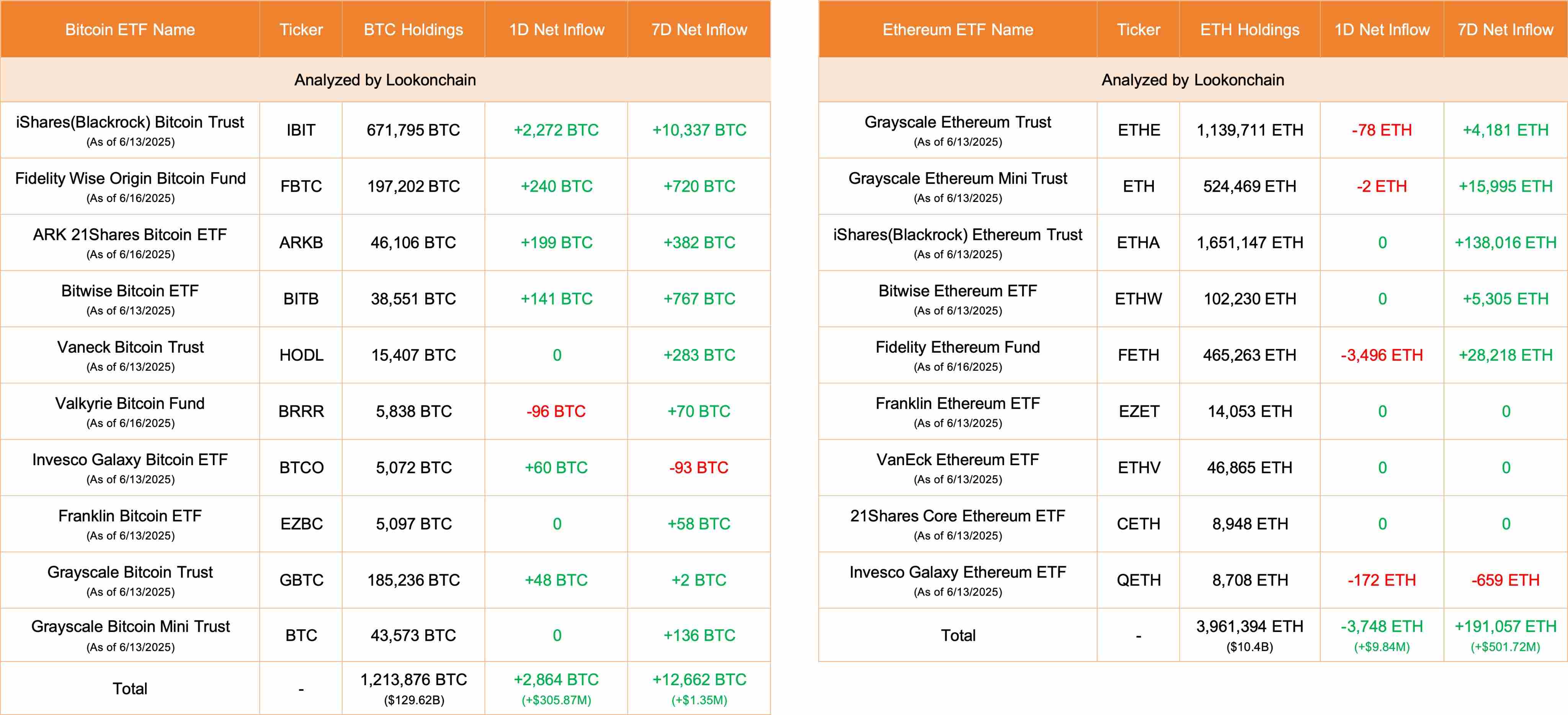 深潮 TechFlow 消息,6 月 16 日,据 Lookonchain 监测,截止于发稿,今日美国比特币现货 ETF 净流入 2,864 枚 BTC(约 3.0587 亿美元),以太坊现货 ETF 净流出 3,748 枚 ETH(约 984 万美元)。