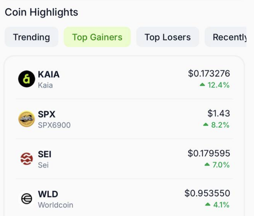 KAIA 成为 Coingecko 前100 代币中涨幅第一的代币