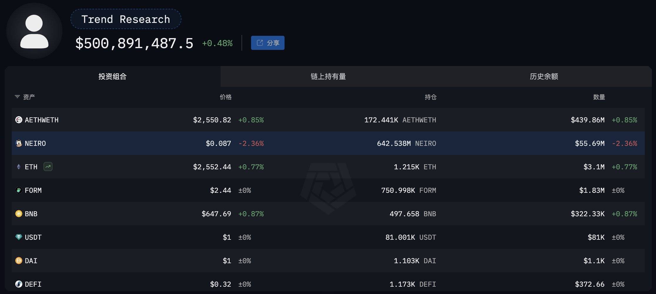 分析师:Trend Research疑似掌控着NEIRO(大写)代币总量的64.25%