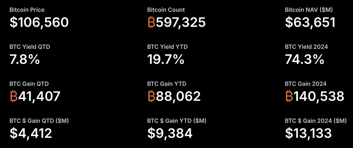深潮 TechFlow 消息,7 月 1 日,Strategy 创始人 Michael Saylor 表示,公司在第二季度实现了 7.8% 的比特币收益率,获得 41,407 枚比特币的收益,价值约 44 亿美元。