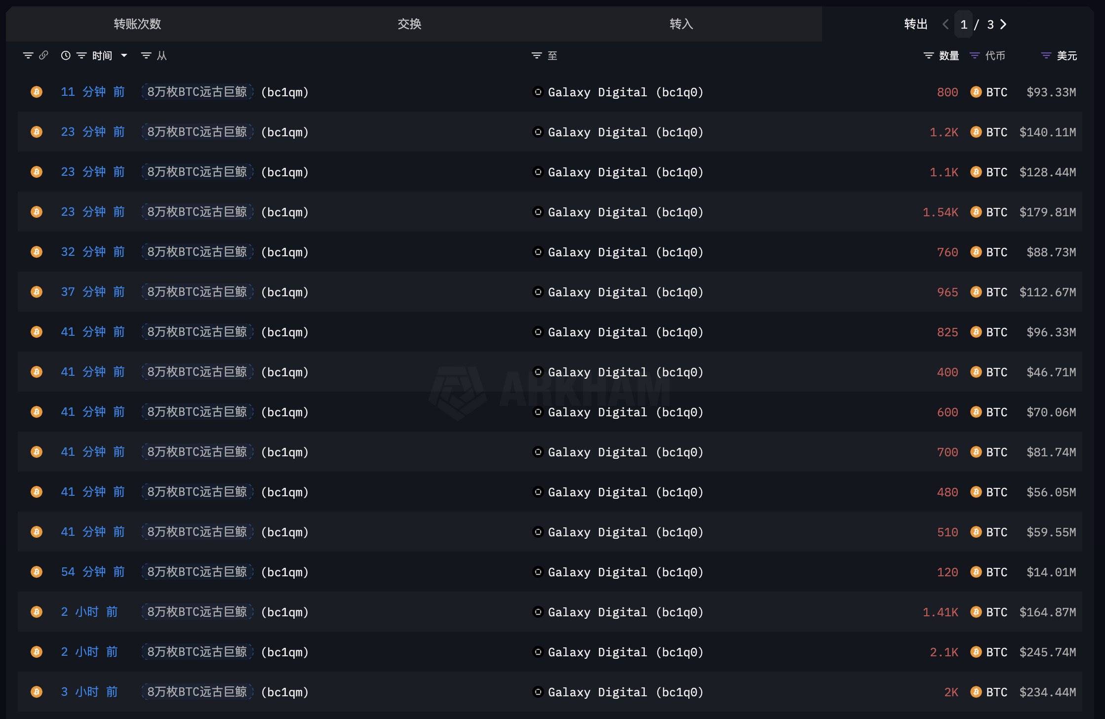持有 8 万枚比特币的远古巨鲸已向 Galaxy Digital 转移其中 4 万枚,价值约 46.9 亿美元