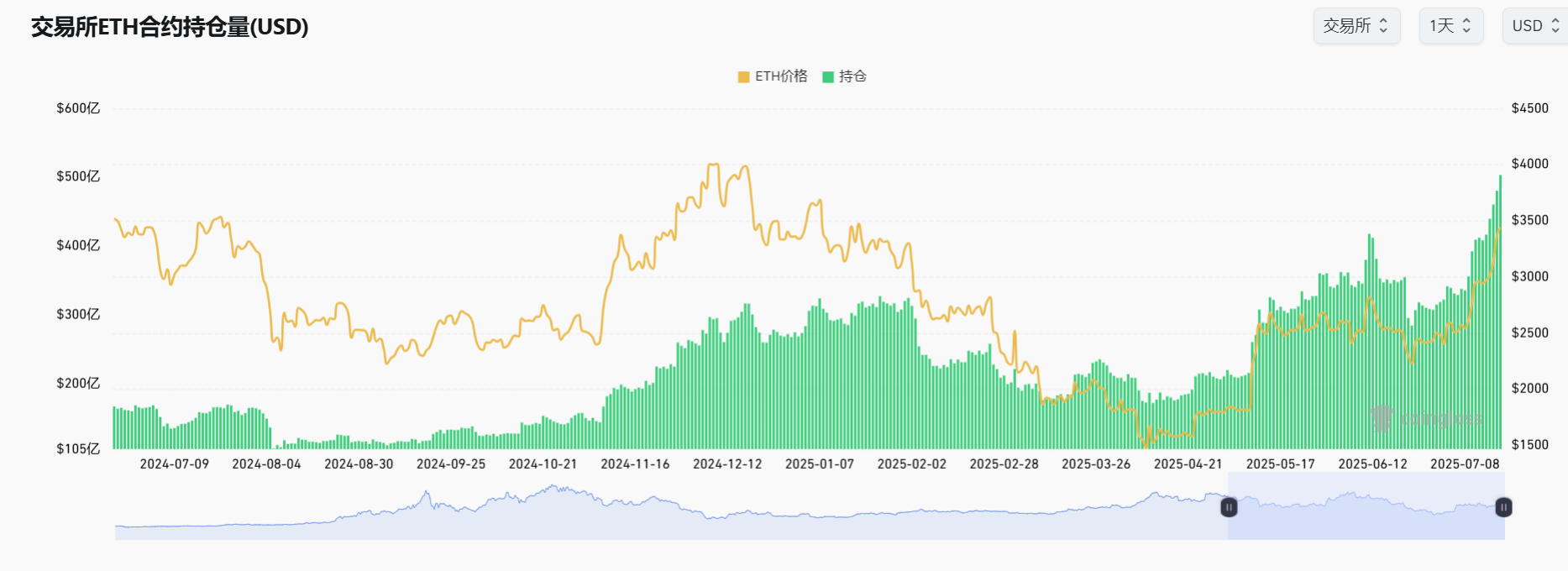全网以太坊未平仓合约量突破500亿美元,24 小时增长 8.06%,创历史新高