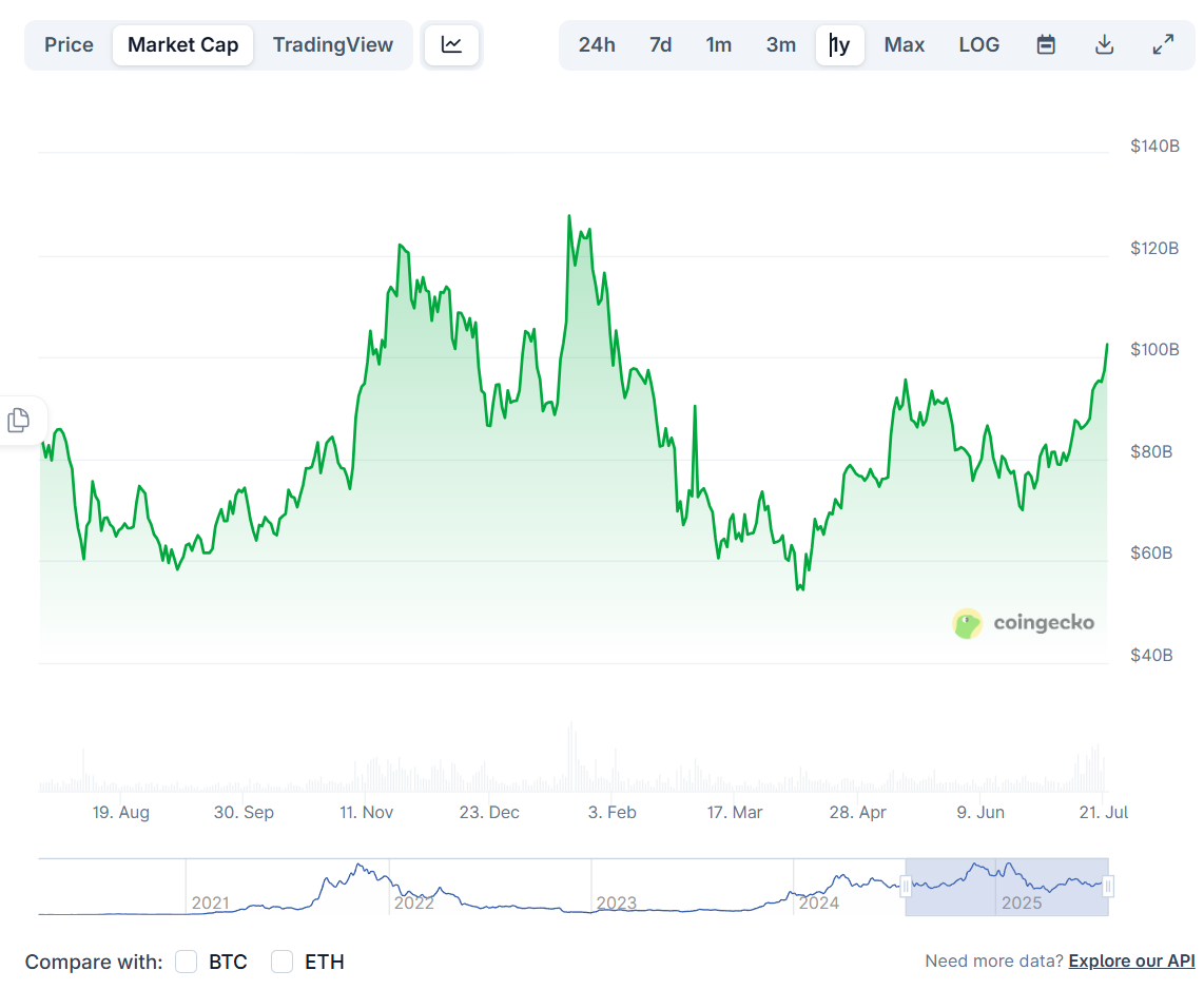 SOL 市值今日突破 1000 亿美元,创近 5 个月以来新高