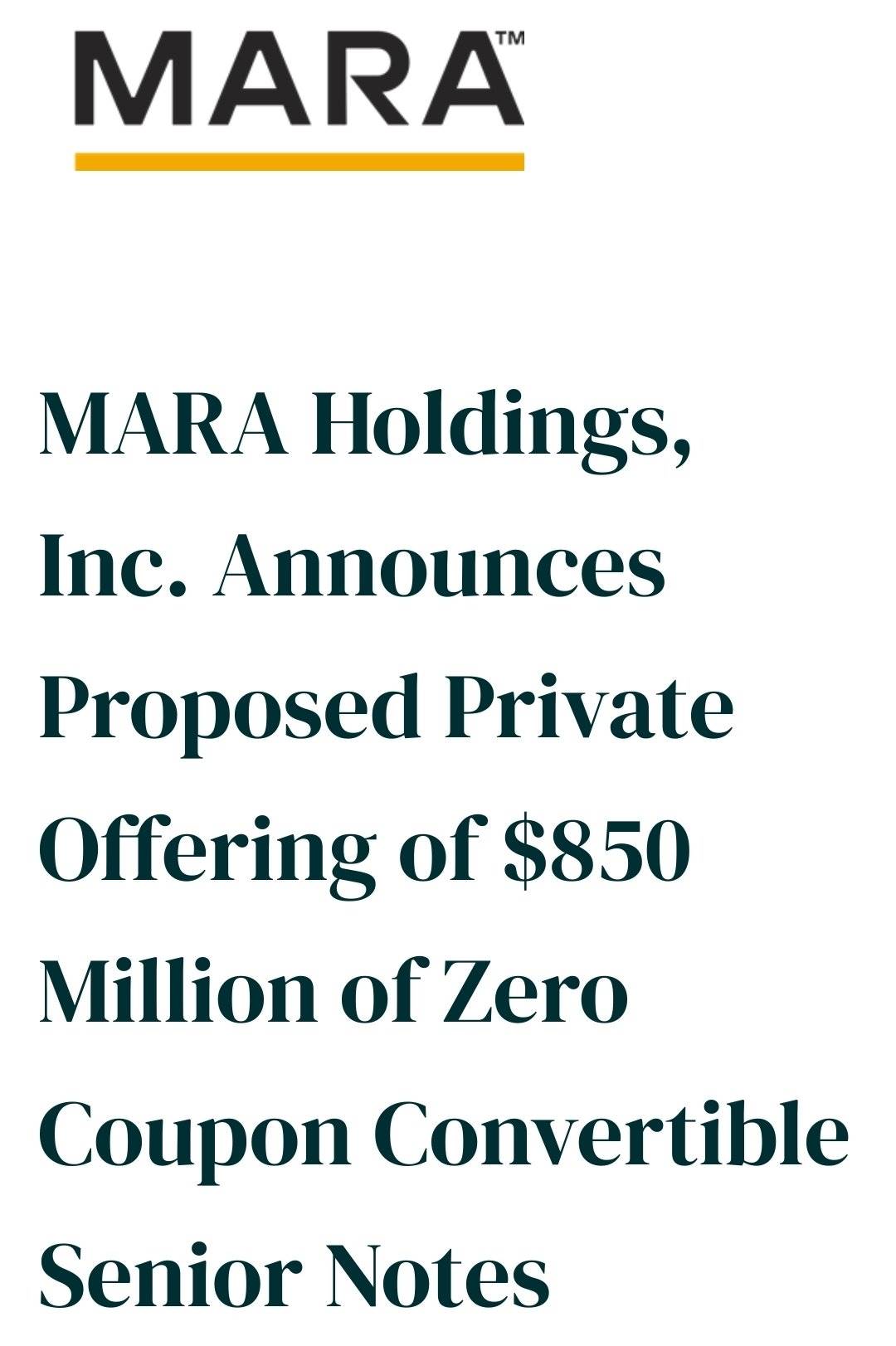 深潮 TechFlow 消息,7 月 23 日,据官方公告,比特币矿企 MARA Holdings 宣布发行 8.5 亿美元的 0% 可转换票据,用于购买更多比特币(以及偿还 5000 万美元的旧票据和用于一般公司用途)。