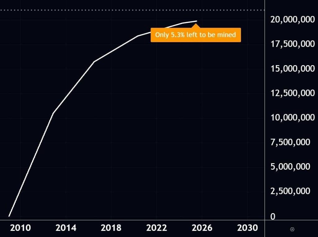 数据:比特币仅剩5.3%未被挖掘,超7.5%已永久消失