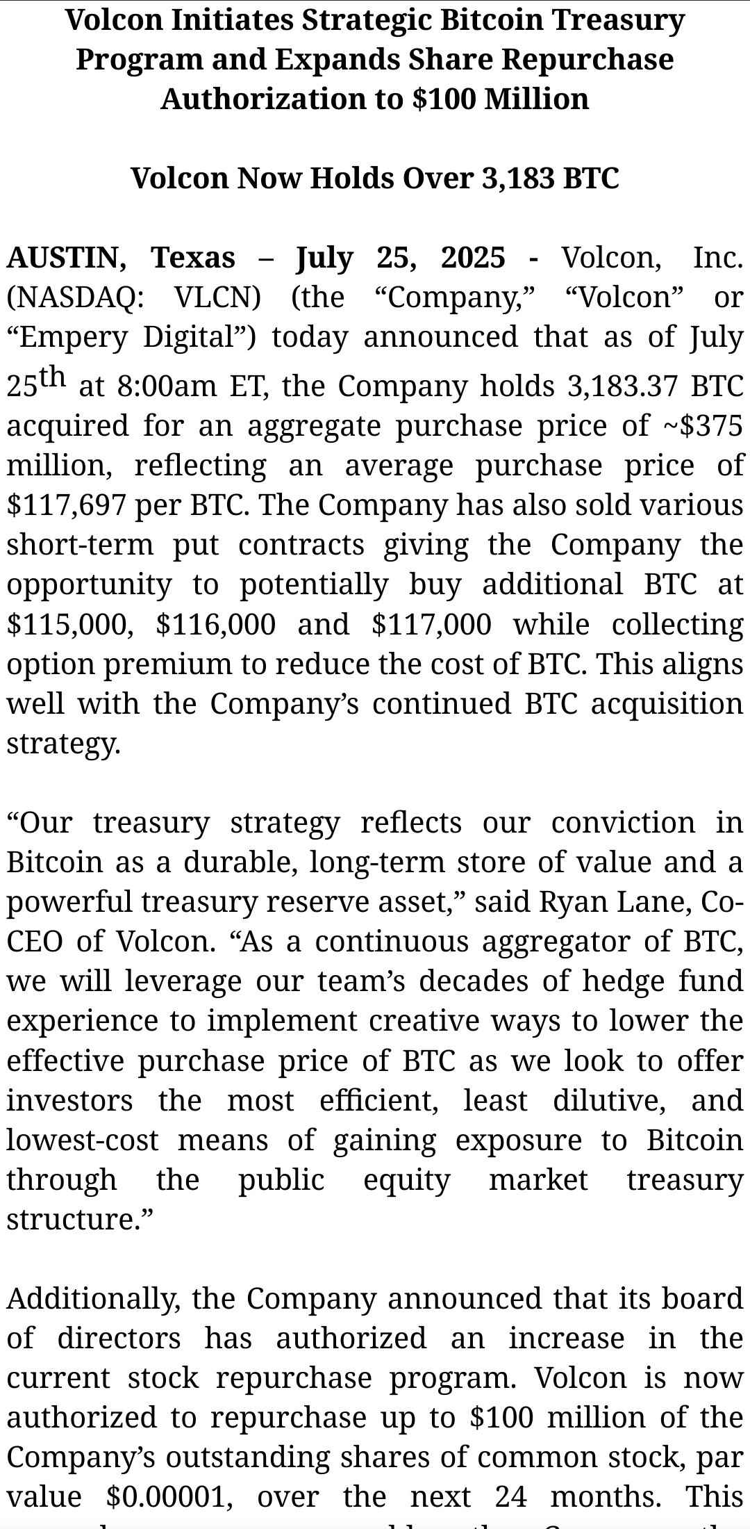 深潮 TechFlow 消息,7 月 25 日,据官方公告,美股上市公司 Volcon 已购入 2903 枚比特币,总持仓达 3183 枚。