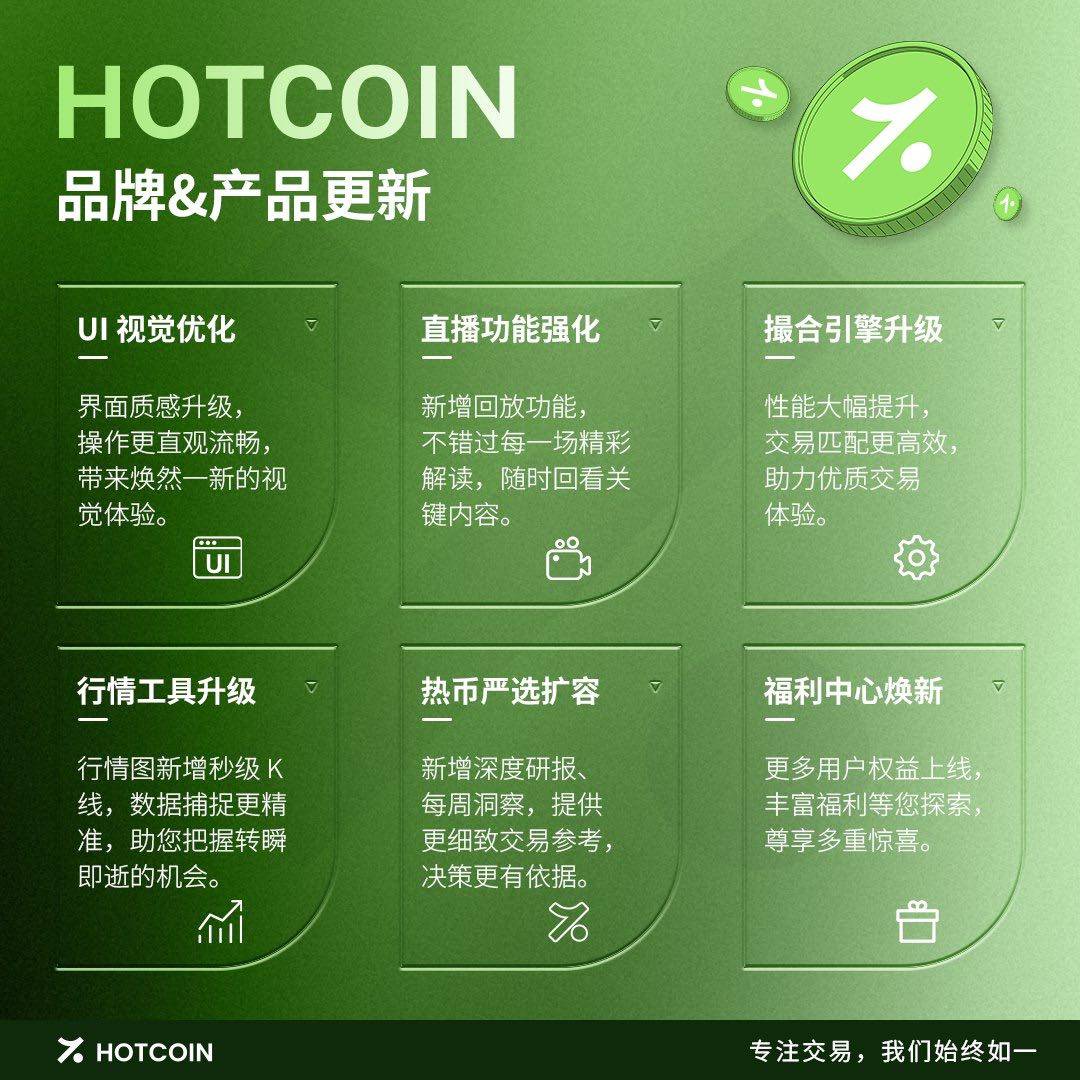 深潮 TechFlow 消息,7 月 28 日,Hotcoin正式启动品牌焕新,六大模块重磅升级,全方位提升用户体验: