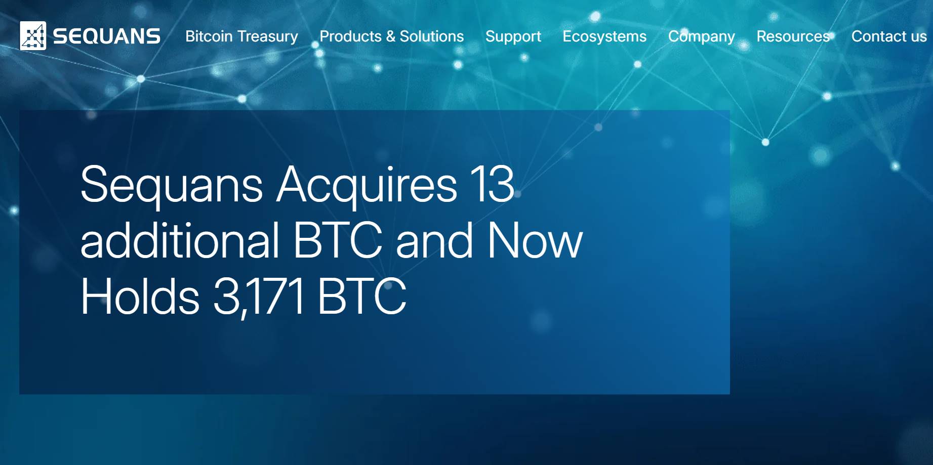 美股上市公司 Sequans 宣布增持 13 枚 BTC,总持仓达 3171 枚