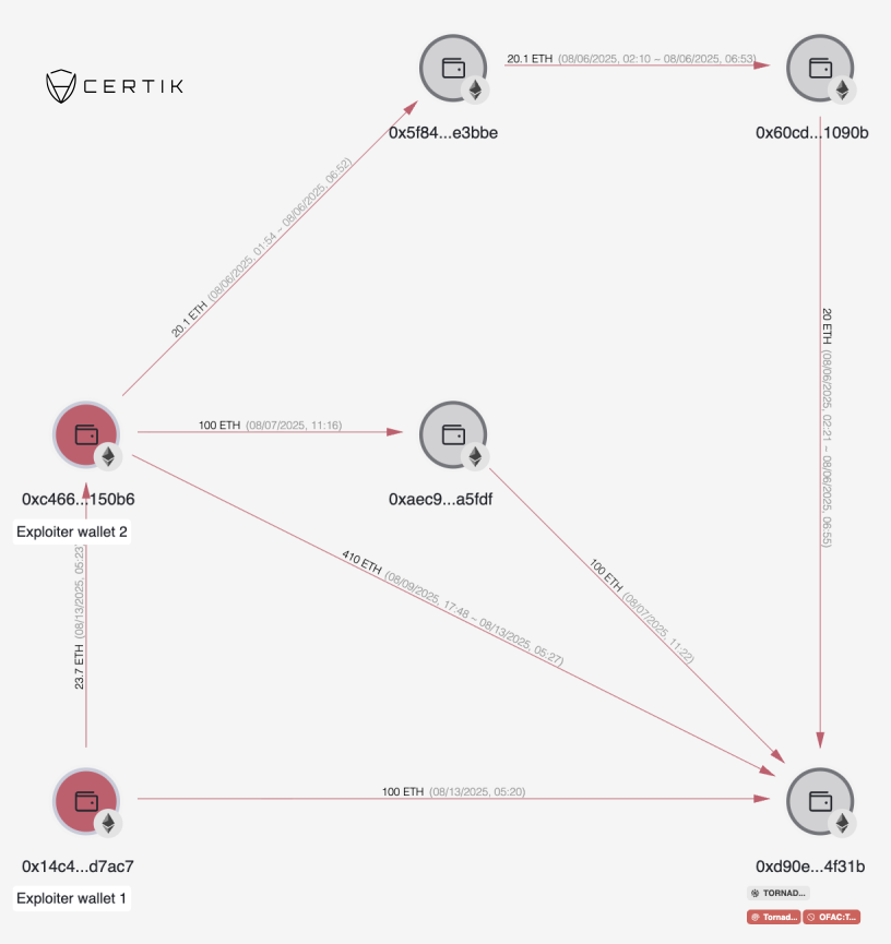 CertiK:CrediX 黑客已将 50% 被盗资金转入混币器,仍持有 630 枚 ETH 未转移