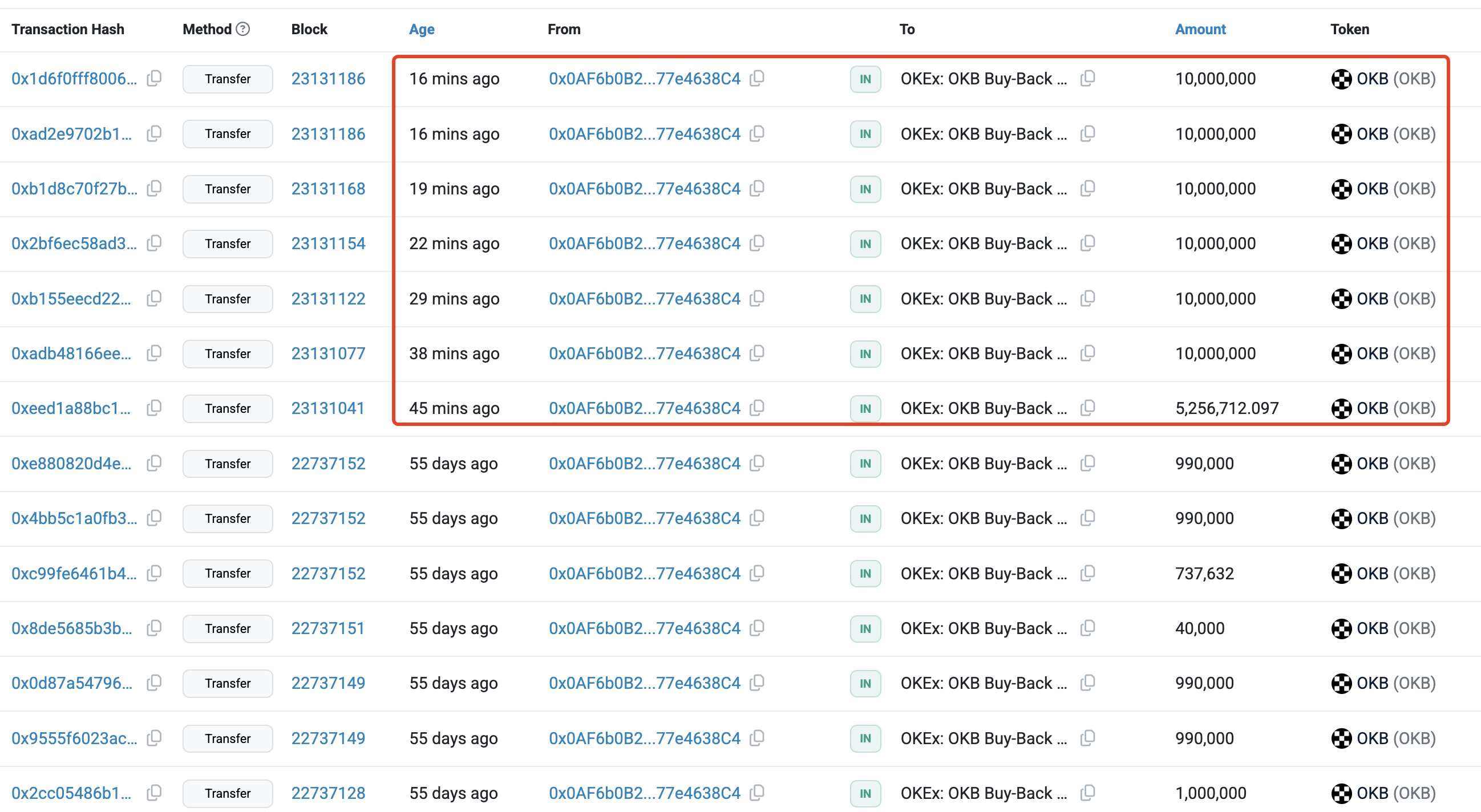 深潮 TechFlow 消息,8 月 13 日,据链上分析平台 Lookonchain(@lookonchain)监测,OKX 交易所在过去一小时内向回购销毁钱包转移了 6526 万枚 OKB(约合 72.9 亿美元)。