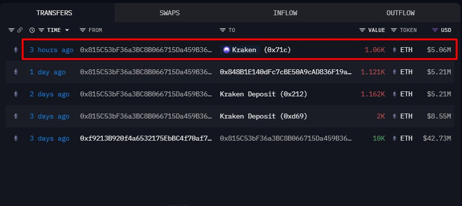 深潮 TechFlow 消息,8 月 14 日,据链上分析师 Onchain Lens(@OnchainLens)监测,一名以太坊 ICO 参与者约 3 小时前向 Kraken 交易所转入 1060 枚以太坊(ETH),价值约 506 万美元。