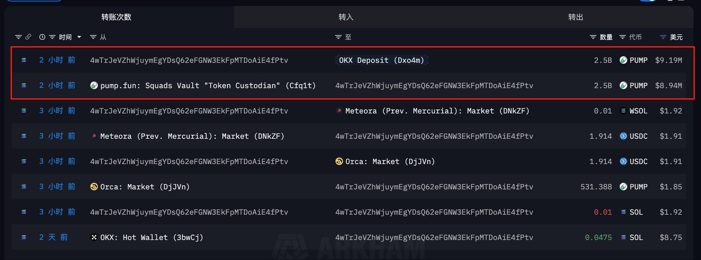 25 亿枚 PUMP 2 小时前从 pump.fun 代币分发地址转入 OKX,价值约 919 万美元