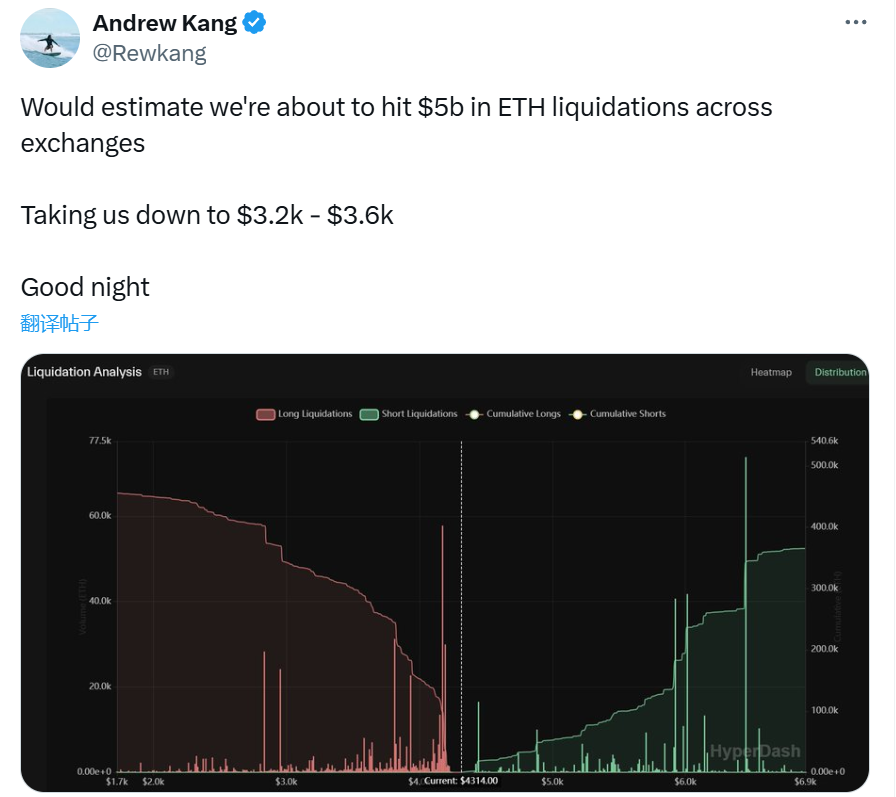 Andrew Kang:预计 ETH 清算额将达到 50 亿美元,价格下探至 3200-3600 美元区间