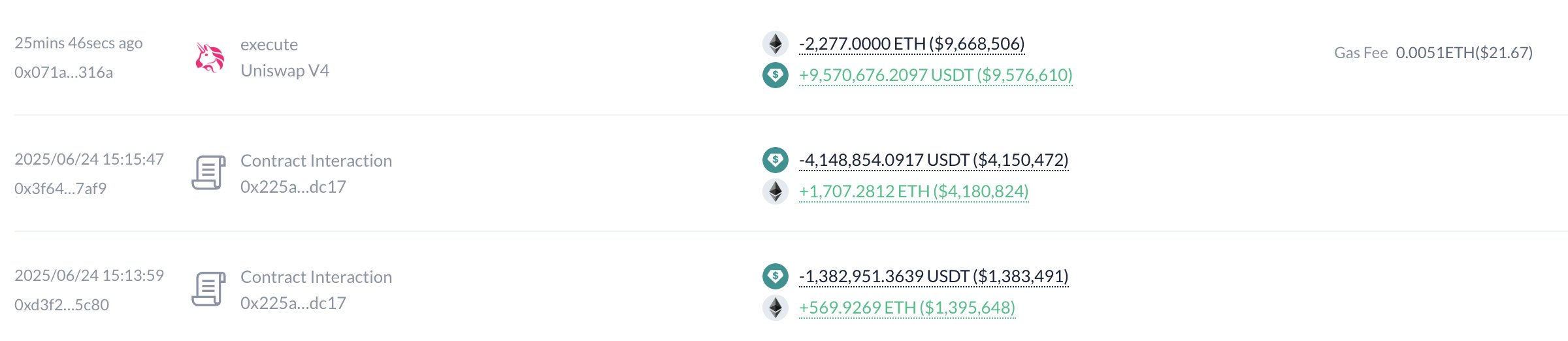 深潮 TechFlow 消息,8 月 18 日,据链上分析平台 Lookonchain(@lookonchain)监测,钱包地址 0x8062 在市场下跌期间以 4,203 美元的价格抛售了 2,277 枚以太坊,交易总额约 957 万美元。该交易产生较高链上滑点,最终锁定获利 404 万美元。