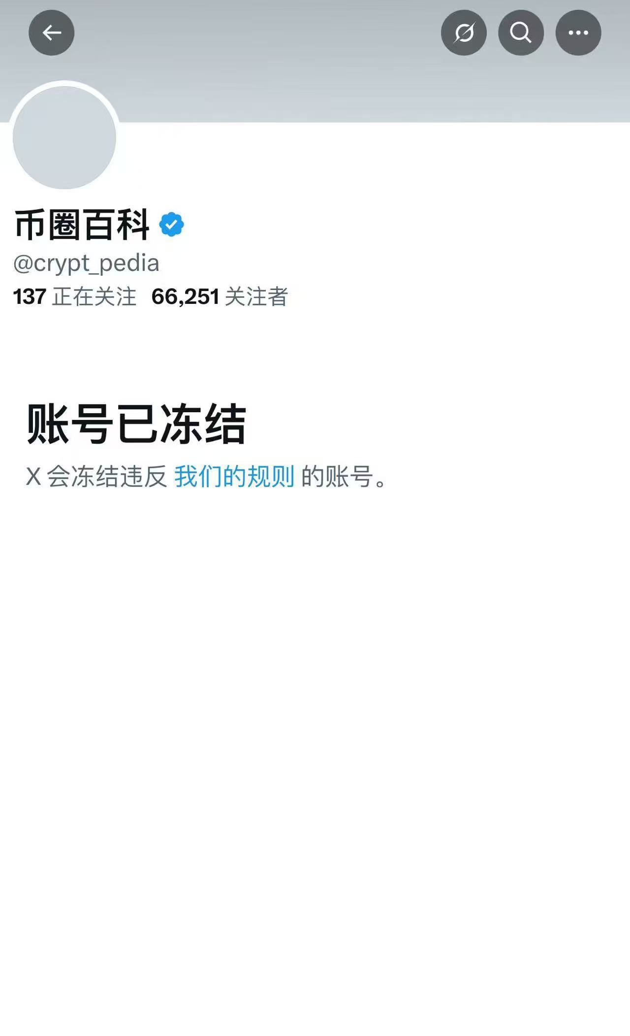 币圈爆料 KOL 币圈百科 X 账号遭封禁