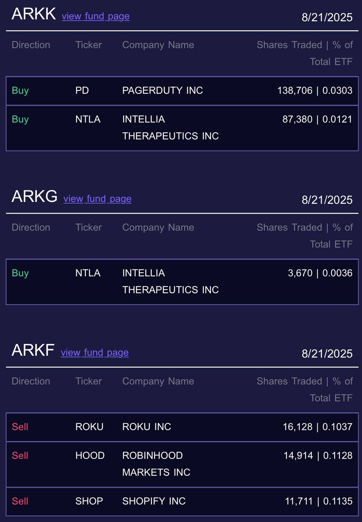 深潮 TechFlow 消息,8 月 22 日,据 Ark Invest Daily 监测,Cathie Wood 旗下 Ark Invest 于昨日共减持 14,914 股 Robinhood 股票,按收盘价计算,其价值约 158 万美元。