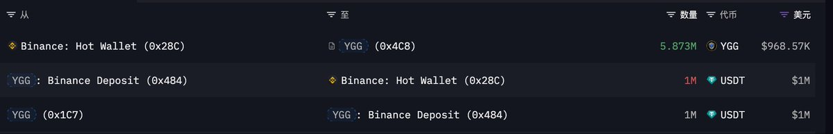 链上数据显示,YGG 于前日将 100 万枚 USDT 转入币安,随后于昨日从币安提取了 587.3 万枚 YGG 代币,回购均价为 0.17 美元。